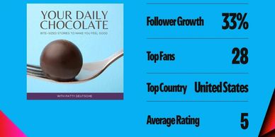Spotify keeps stats -- and they showed that Your Daily Chocolate Podcast fans listened to our episodes for longer than 67% of other shows (Marathon Shows). And, it's a Fan Fave - meaning the average rating was higher than 75% of other shows! Well done y'all!
